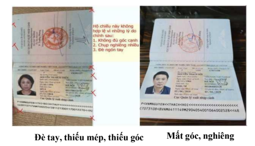 MỘT SỐ MẪU CHỤP HỘ CHIẾU BỊ TRẢ LẠI – KHÔNG ĐẠT YÊU CẦU Những hộ chiếu mới có lớp phản quang chụp sẽ khó hơn. Nếu chụp bằng điện thoại thấy khó khăn thì nên mang hộ chiếu ra tiệm photo đế scan cho đạt chất lượng tốt nhất