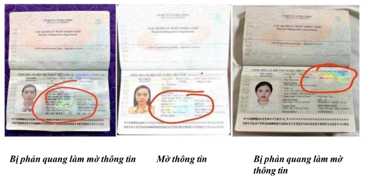 Dưới đây là một số điển hình khi chụp hộ chiếu mới cấp (có lớp phản quang) bằng điện thoại.