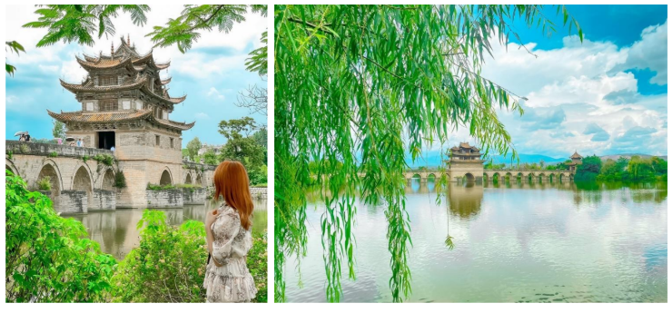 Tiếp đến, đoàn di chuyển tham quan cầu Song Long – Cây cầu đá cổ kính giữa lòng Vân Nam – “17 nhịp cầu cong, tượng trưng cho 17 con rồng”: