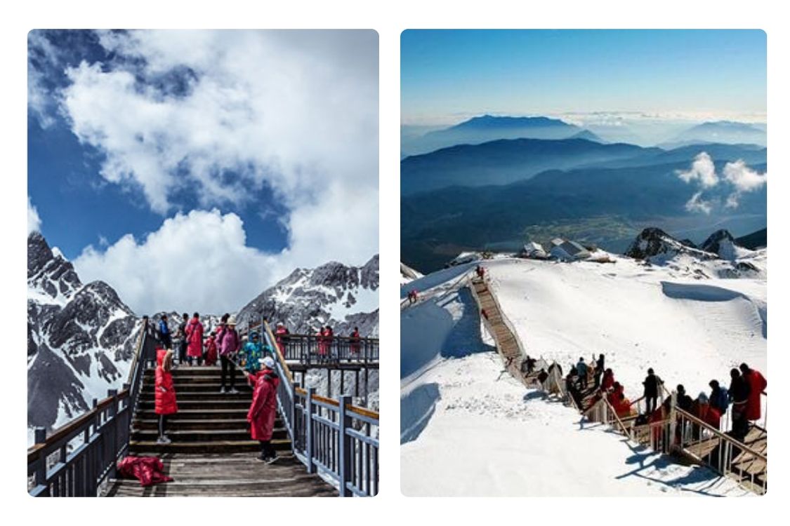 – Ngọc Long Tuyết Sơn (Yulong snow mountain): Ngọc Long tuyết sơn là danh thắng nổi bật tại Lệ Giang, cách khoảng 30 km về phía bắc của thành phố. Tại đây, Du khách sẽ có trải nghiệm ấn tượng và khó quên khi đứng trước sự hùng vĩ của những khối núi đá trắng cao trên 5.000 m với hơn nửa ngọn núi có tuyết phủ trắng xóa cả đỉnh. Không chỉ ngắm cảnh núi tuyết độc đáo và kỳ vĩ, du khách đến nơi đây còn tham gia trải nghiệm nhiều hoạt động khác nhau như leo núi, trượt tuyết, cắm trại hay khám phá thảm thực vật phong phú và nhiều loại động vật quý hiếm.