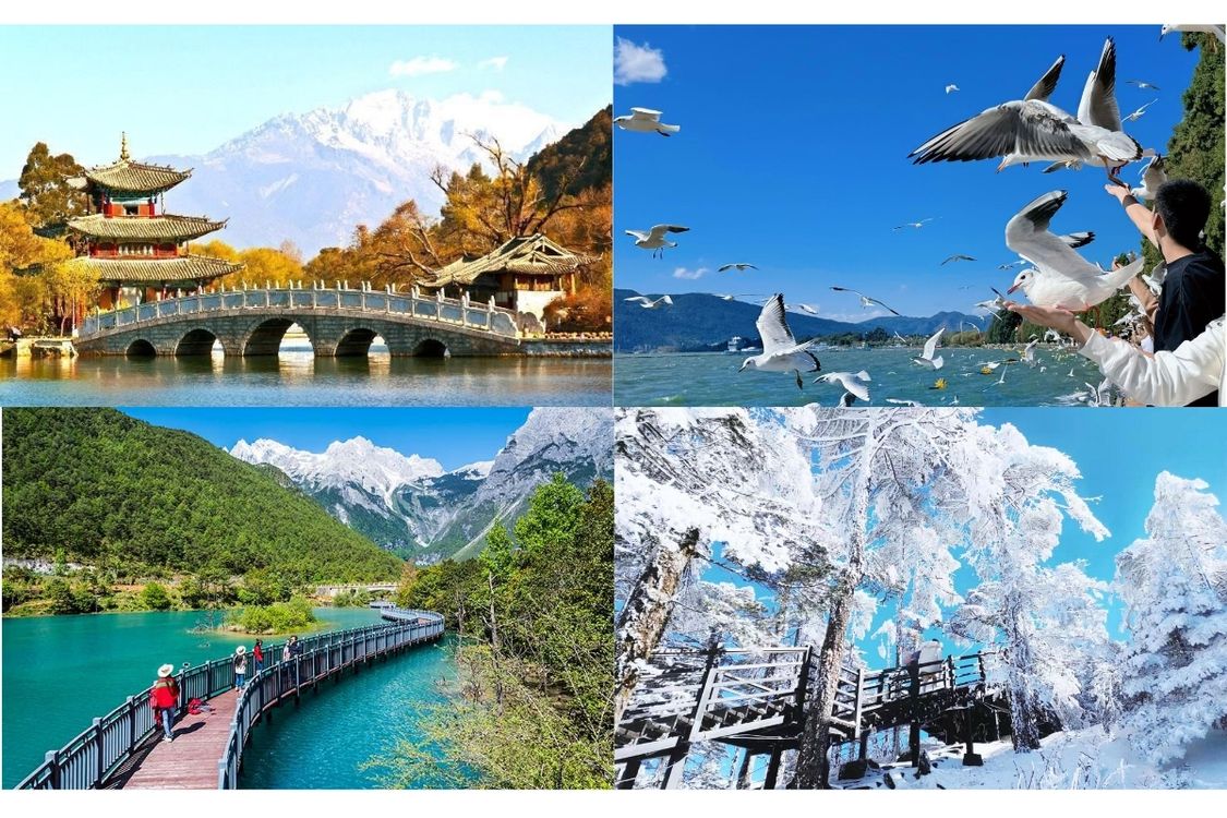 – Lệ Giang cổ trấn (Lijiang Old Town): Nằm trên độ cao 2.410 m tại cao nguyên Tây Bắc Vân Nam, được bao bọc bởi những ngọn núi tuyết phủ quanh năm, Lệ Giang là một đô thị cổ hơn 800 năm lịch sử mang những nét văn hóa truyền thống của dân tộc Nạp Tây. Những góc phố cổ kính xen kẽ hệ thống kênh đào chằng chịt là sự kết hợp hài hòa giữa kiến trúc của người Hán, Bạch và Tây Tạng đã tạo nên nét đặc sắc của riêng Lệ Giang. Đặt chân đến nơi đây, Du khách sẽ cảm nhận được sự gần gũi, hài hòa giữa con người và thiên nhiên, tìm kiếm cho mình những phút giây yên bình và sâu lắng.