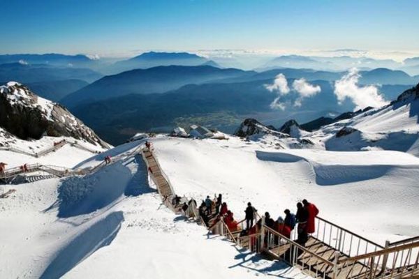 - Khu lịch Núi Tuyết Ngọc Long. Quý khách đi cáp treo nhỏ lên thăm Vân Tam Bình – độ cao 3200 m ngắm cảnh đẹp Núi tuyết Ngọc Long – ngọn núi cao 5596m tuyết phủ quanh năm. Phần băng vĩnh cửu ánh lên một màu xanh như ngọc. Lại gọi đây là núi trinh nữ vì cho đến nay con người chưa một lần chinh phục được nó. Nhiều nhà leo núi đã bỏ mạng hoặc ngậm ngùi rút lui, bất lực trước sự trinh nguyên bí ẩn của vùng núi vào loại đẹp nhất tỉnh Vân Nam này.