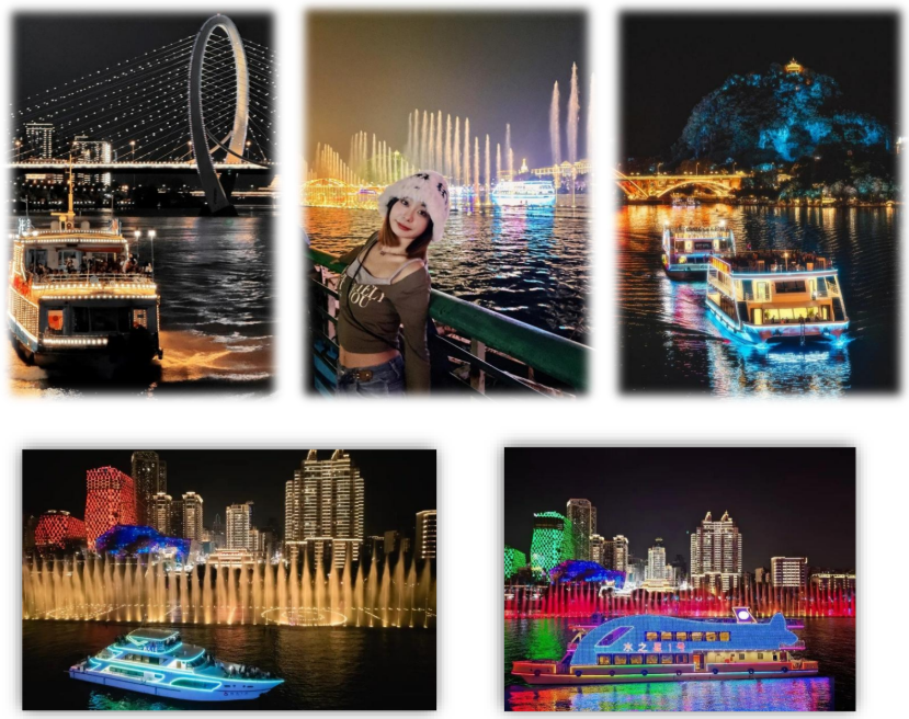 Khi màn đêm buông xuống, đèn neon hai bên bờ sông Liễu Giang sáng rực, đường phố tấp nập người qua lại. Dưới ảnh sáng của đèn cảnh quan màu sắc, những ngọn núi ven sông đô thị, thác nước và đài phun nước âm nhạc được phản chiếu trên sông Liễu Giang, đây là cảnh hấp dẫn nhất trong đêm của Thành Phố Liễu Châu.