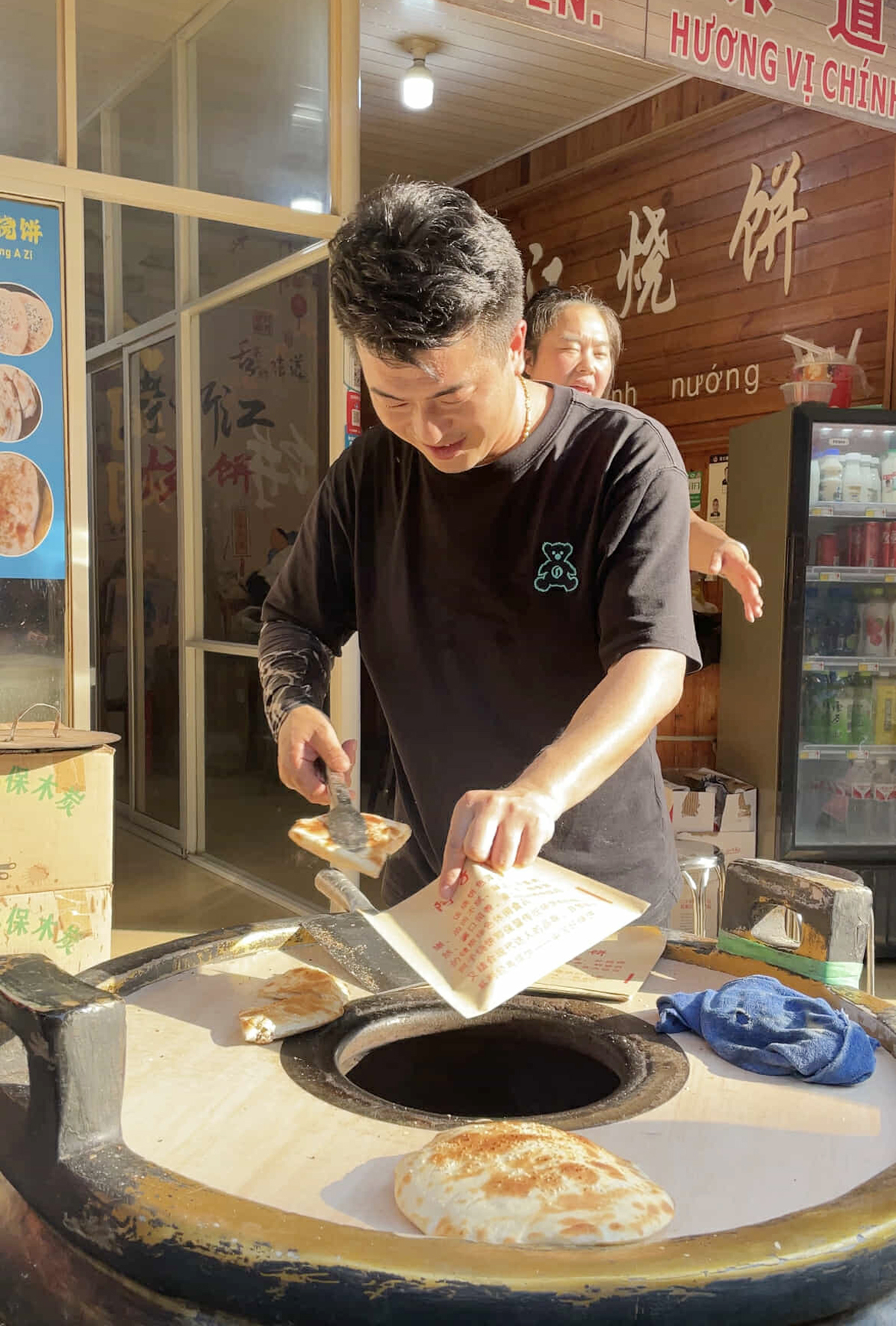 Tại khu chợ ẩm thực gần cửa khẩu, nhiều món ăn vặt được du khách lựa chọn, trong đó có bánh nướng Chiết Giang (hay bánh nướng lu), nhân đậu hoặc nhân mặn. Giá bánh từ 5 đến 8 tệ mỗi chiếc. Một số quán đông, khách phải xếp hàng chờ lâu.